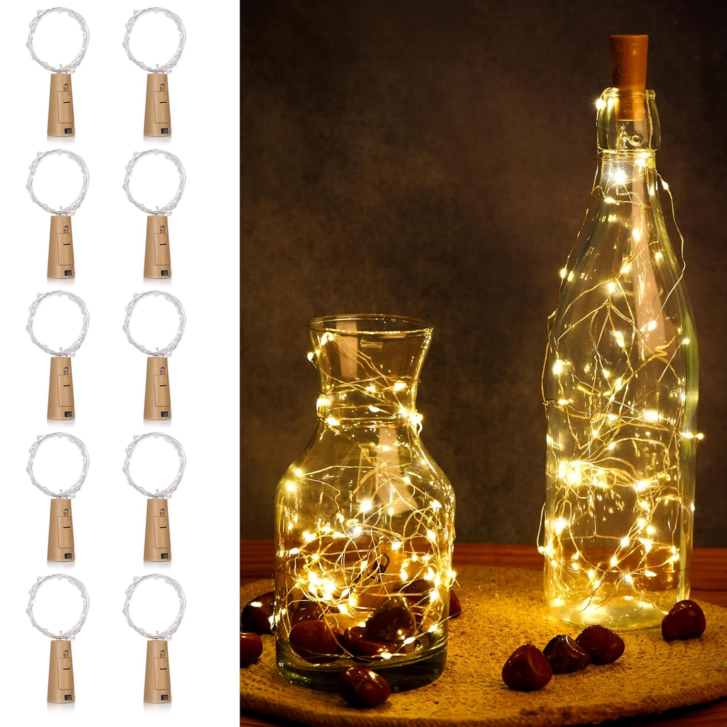• VERSATILE & DECORATIVE: These 20 LED Bottle Cork Lights turn any ordinary bottle into a stunning decorative piece. Ideal for elevating the ambiance of celebrations, they are suitable for weddings, parties, or festive occasions like Diwali, adding a magical touch to any event.