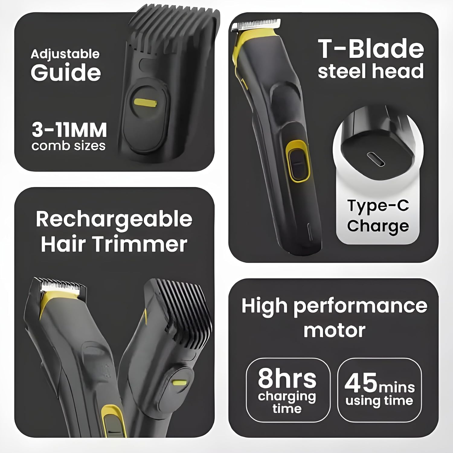 - Adjustable Guide Combs – Customize your trimming length for sharp lines, smooth fades, and even cuts.